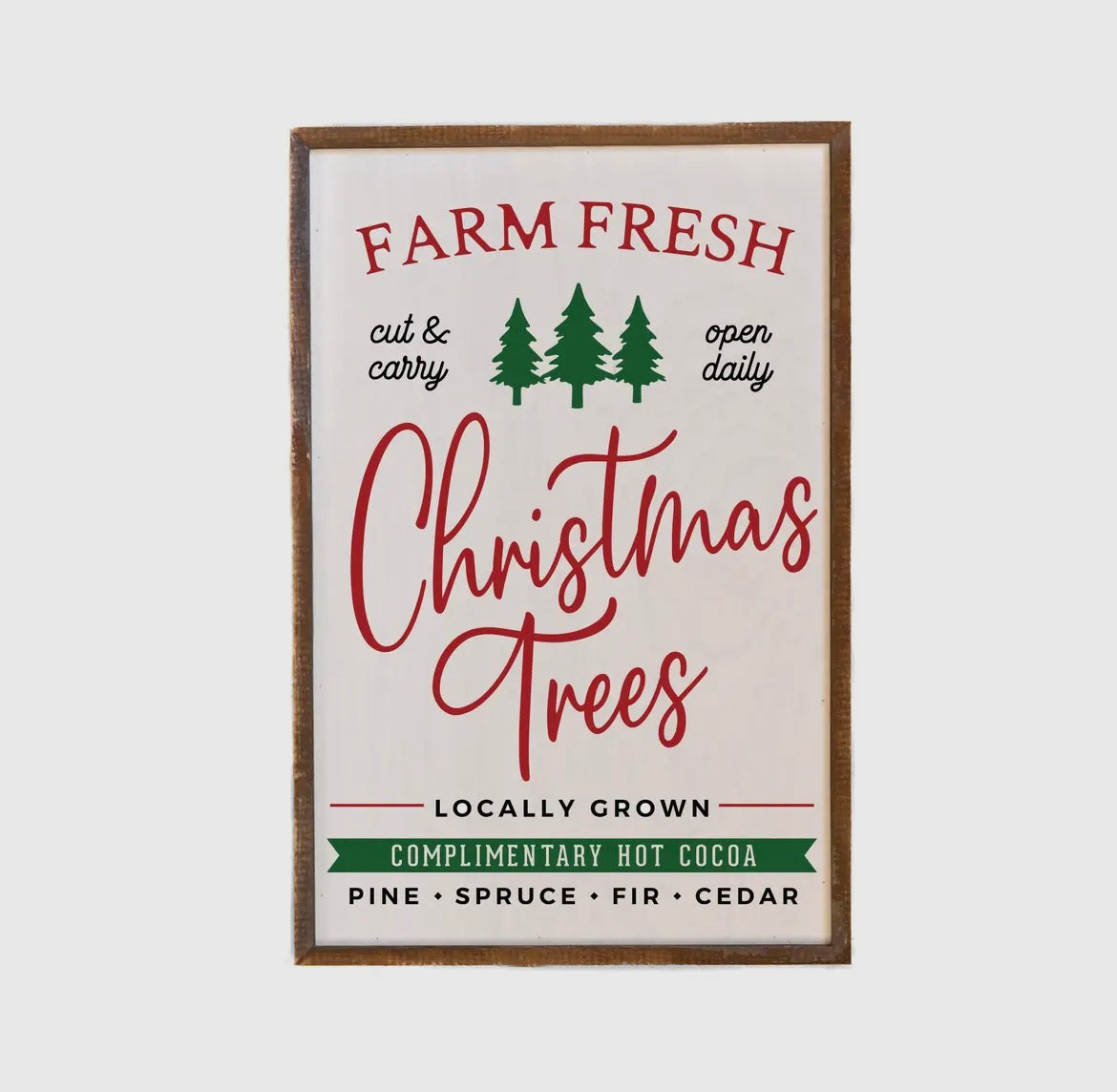 Add a little rustic charm to your decor this year with this handmade Christmas Tree farm wooden framed sign. Made with classic reds and greens, this sign will blend right in while also standing out.