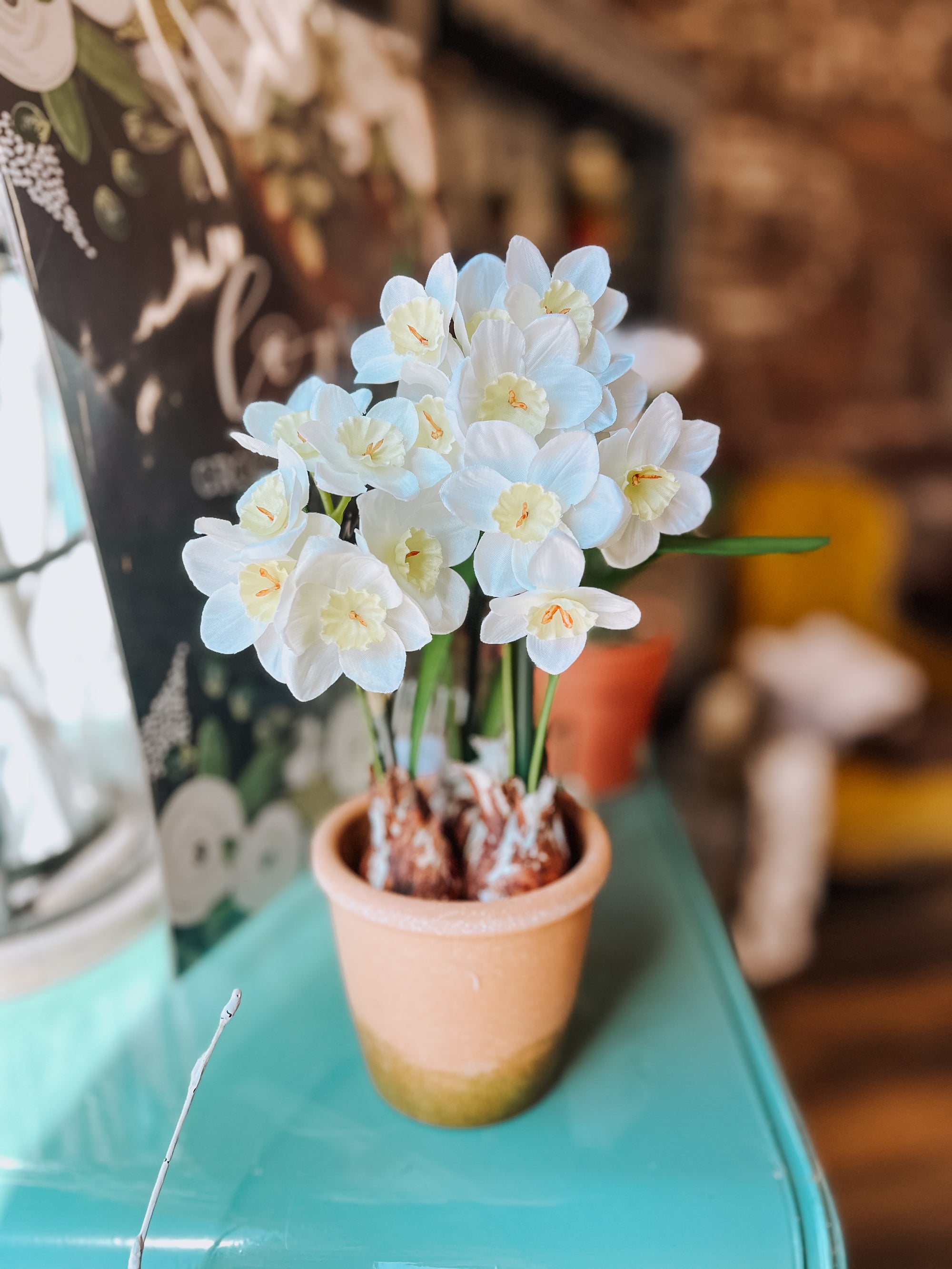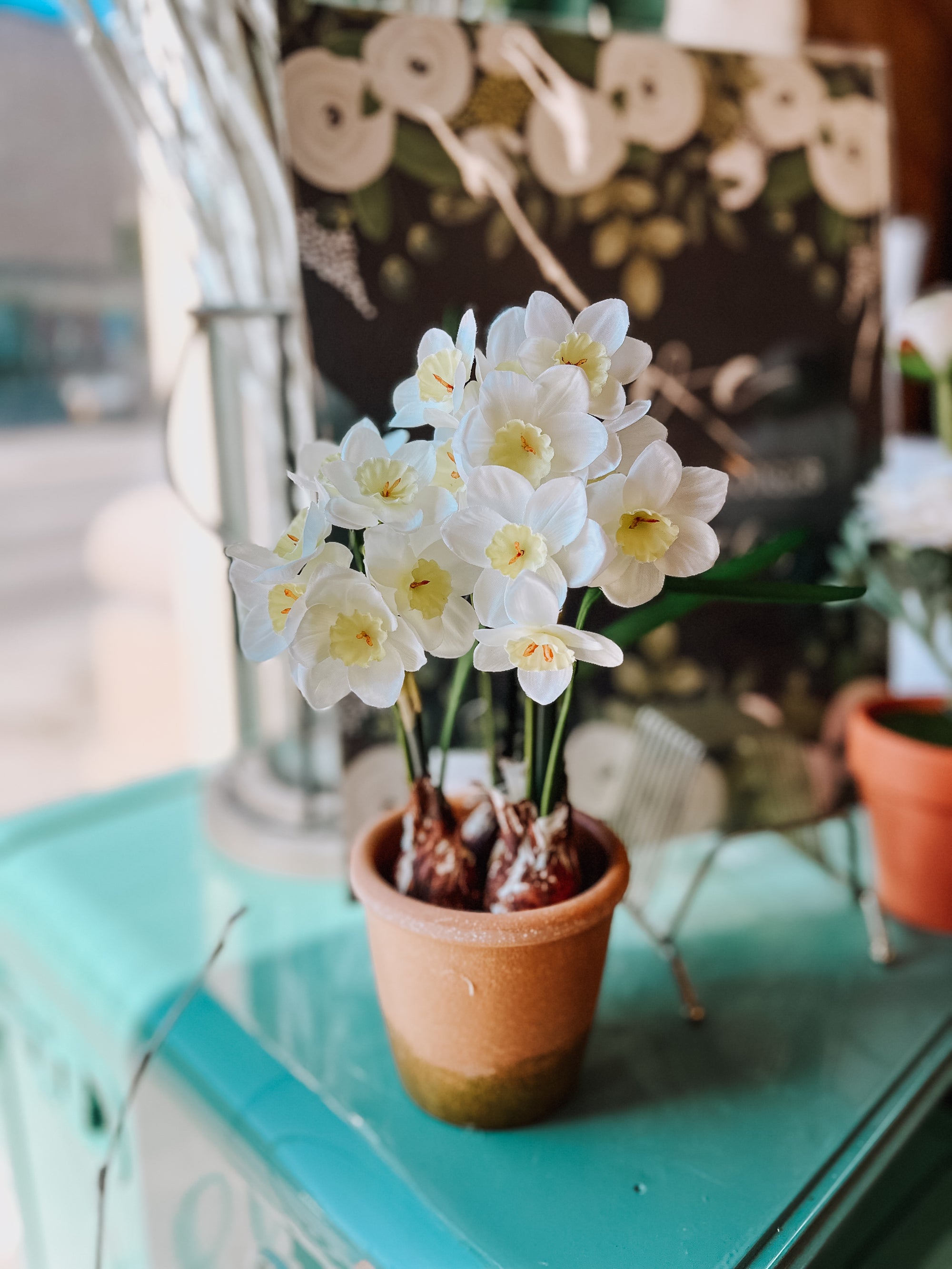 Add a pop of perpetual spring to your décor with our faux narcissus nestled in a terracotta pot! No green thumb required – these vibrant blooms stay fresh and cheery all year round. Perfect for brightening up any space with a dash of playful charm and none of the watering fuss!
