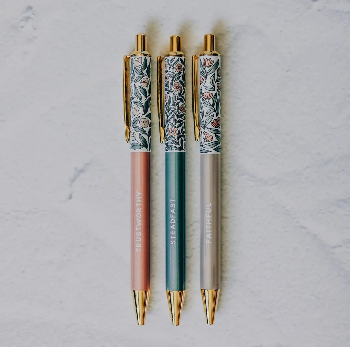 This beautiful Floral Pen Set was designed to aid you in your Bible and book studies while also providing you with a thoughtful tool that points you back to the Lord.