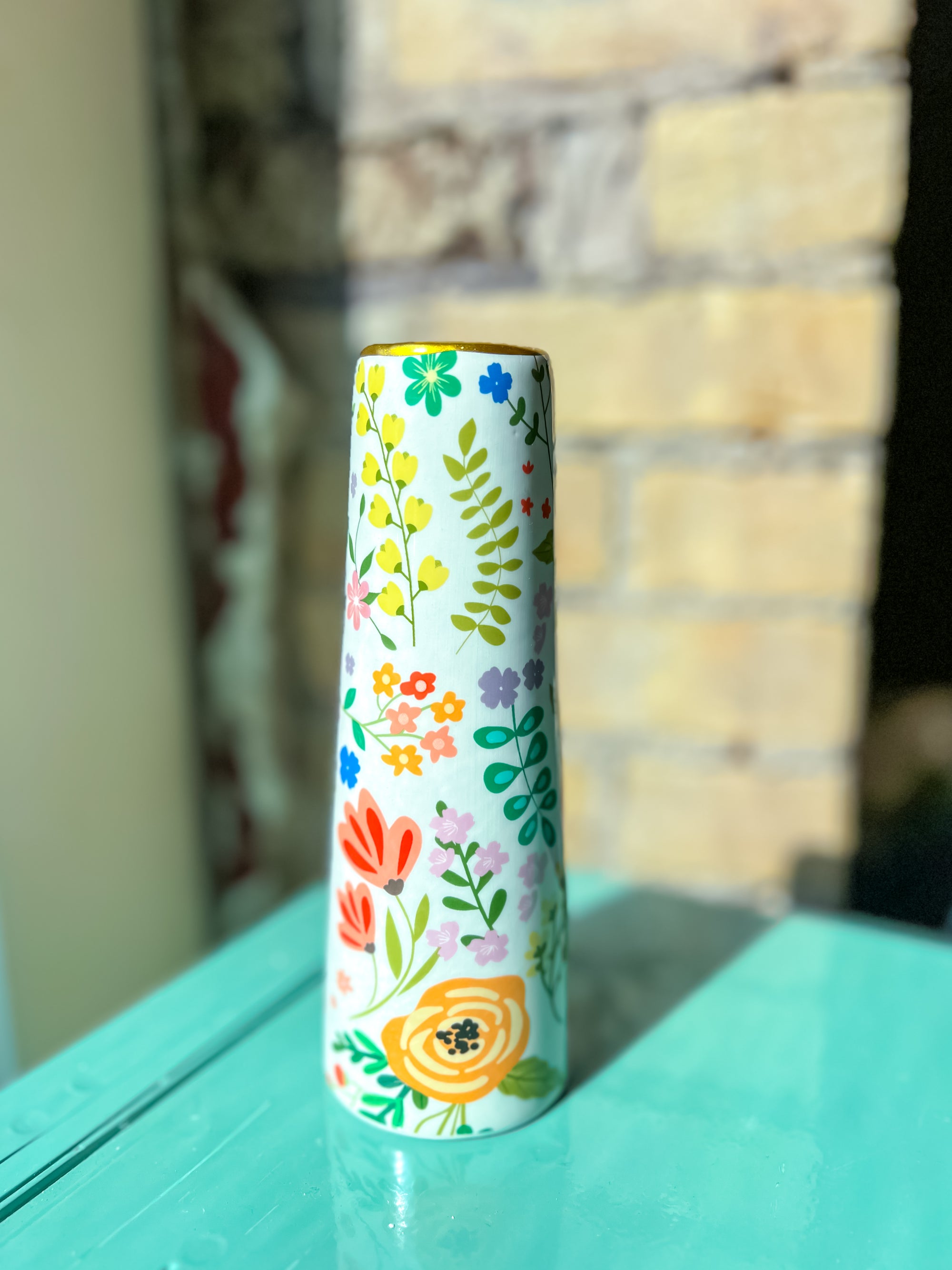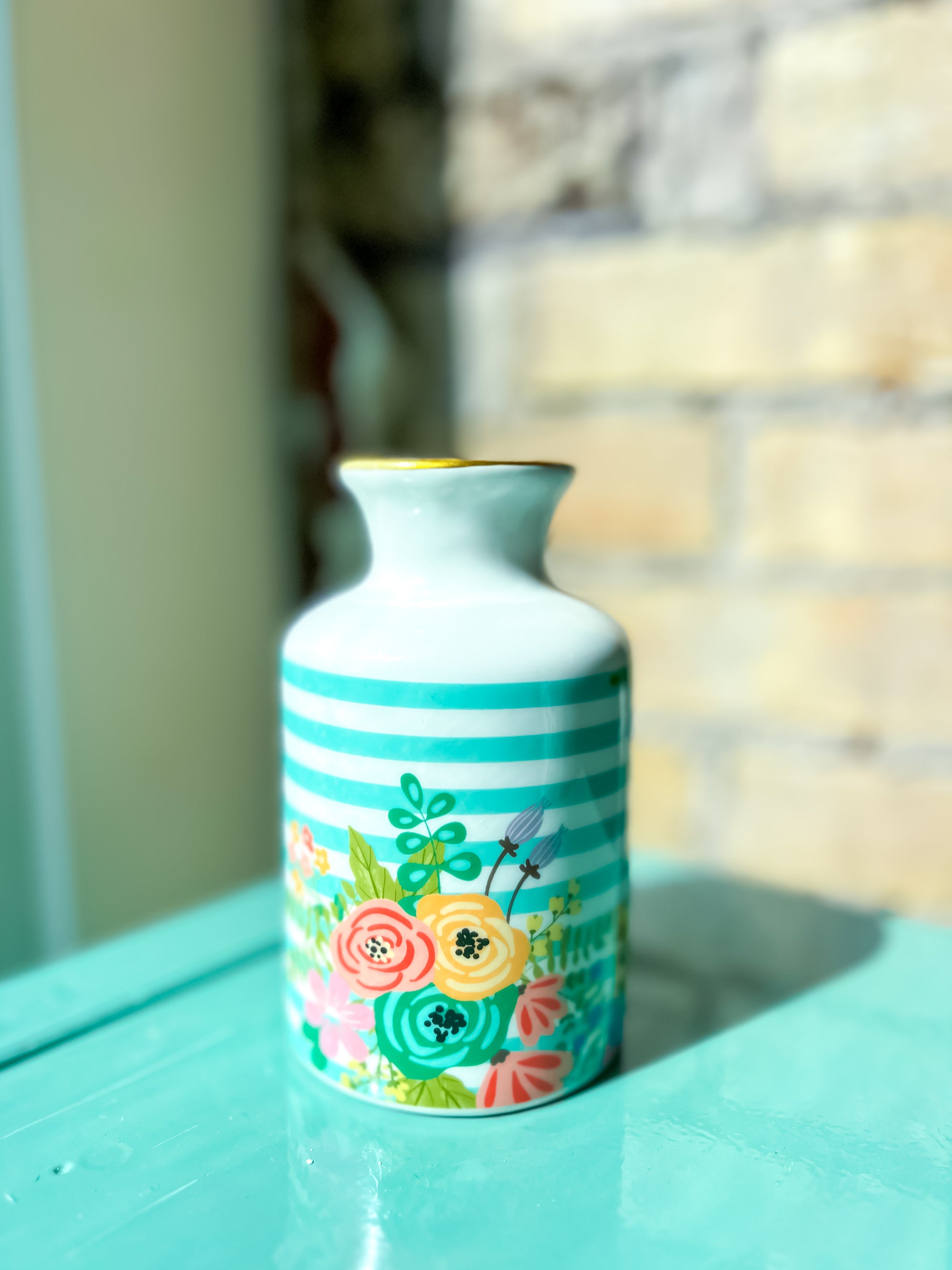 Wide Floral + Stripe: 5" H x 3" Diameter