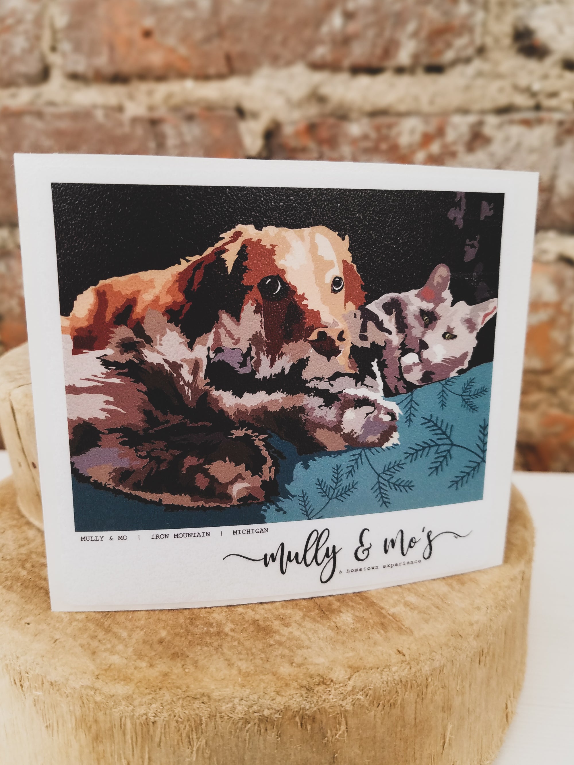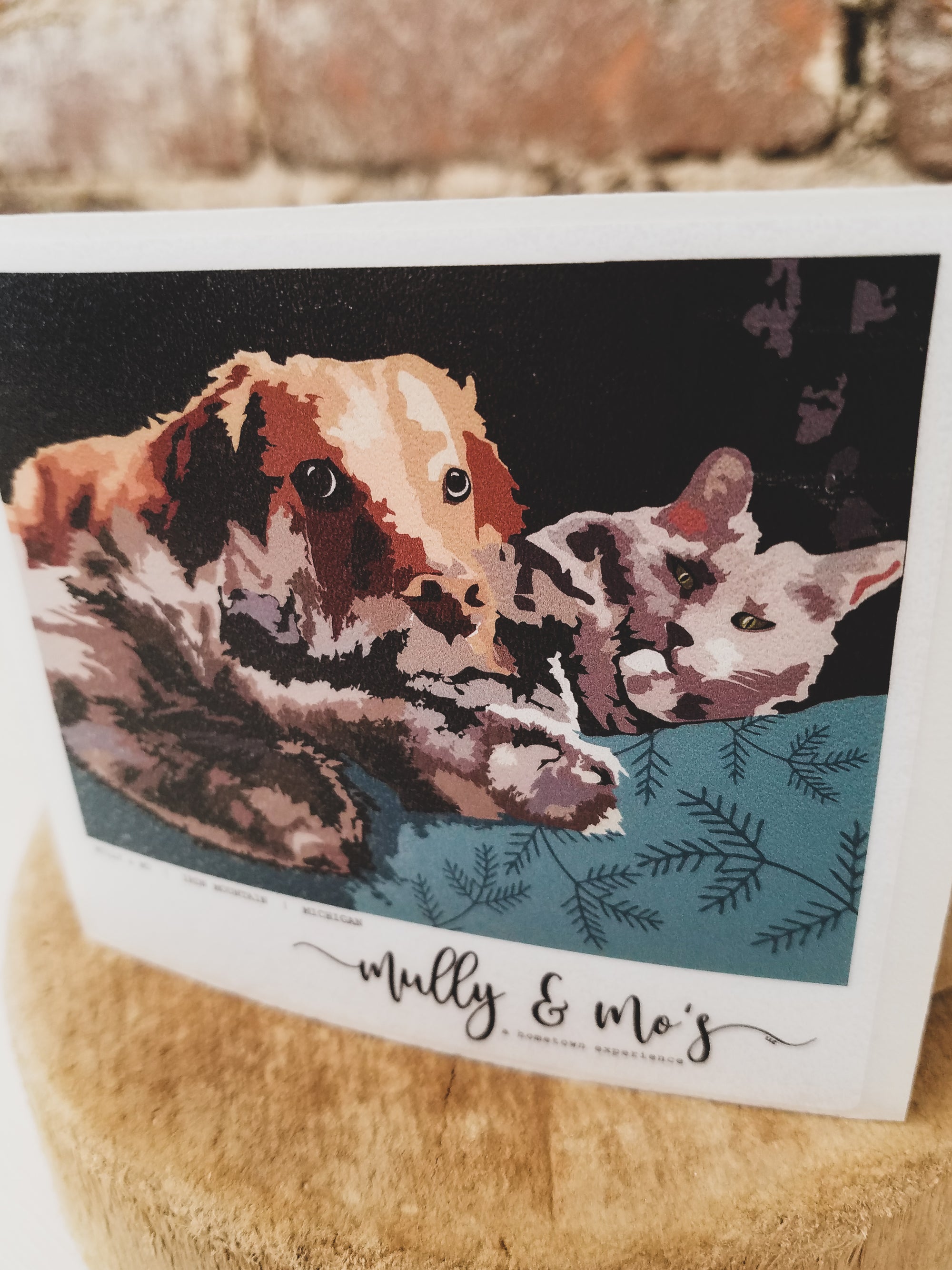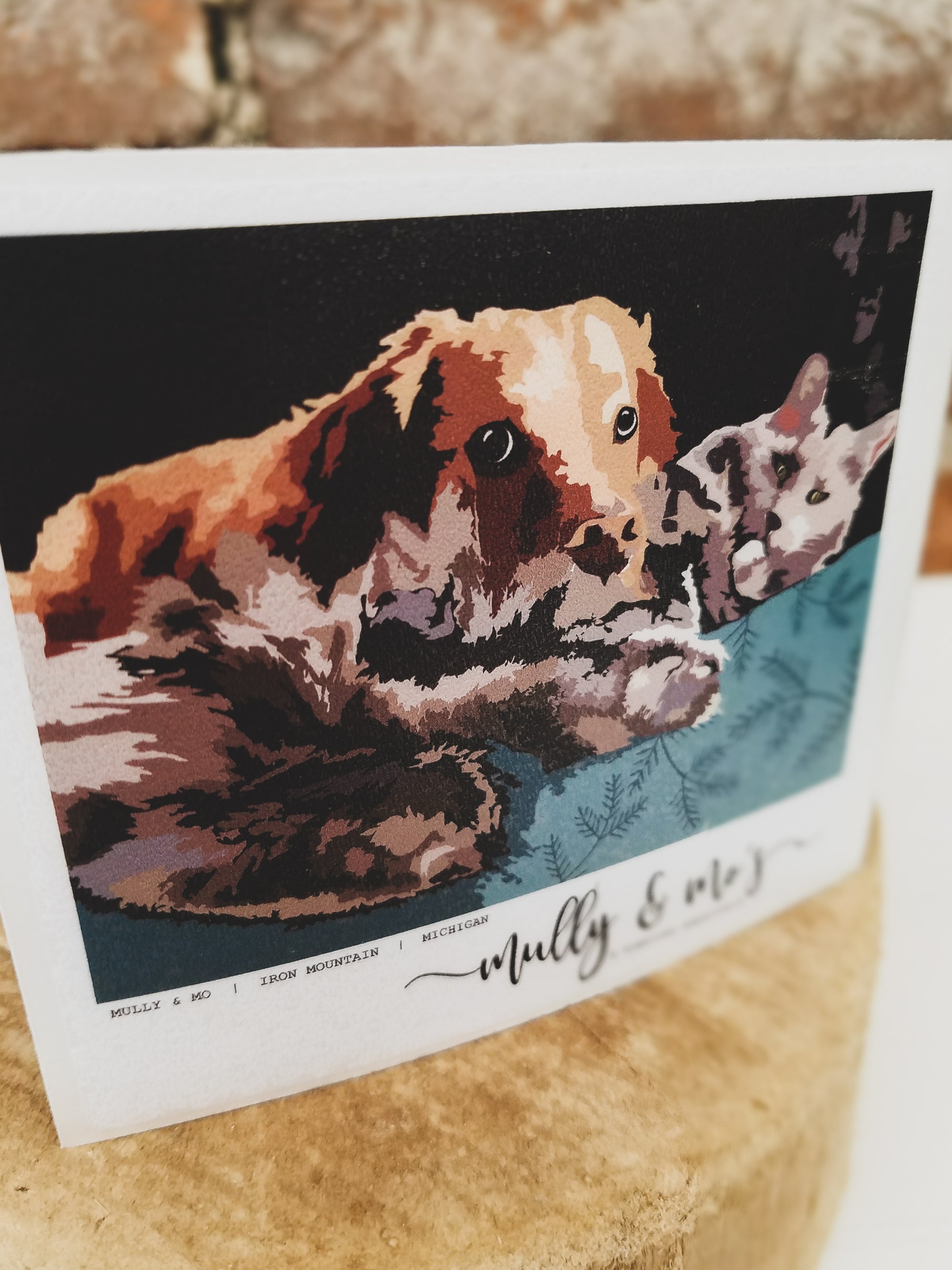 Mo is never in shop, because the little bugger loves to explore a little too much and would probably sneak out the door, but as soon as we get home, Mulligan heads straight for him. They play and wrestle, but they love to cuddle and sleep up next to each other. They're true brothers! It's only fair we made a decal that represented both our namesakes.