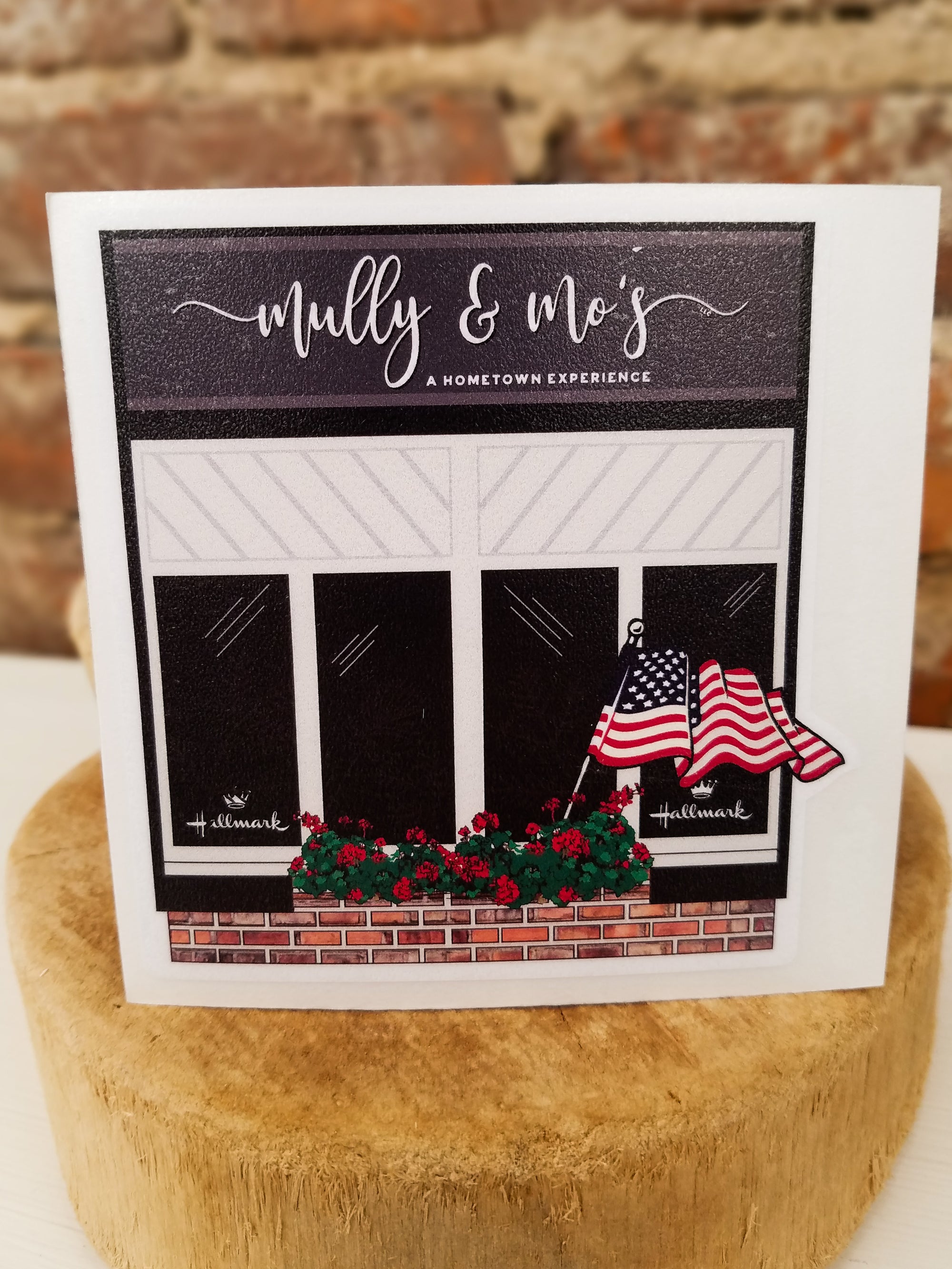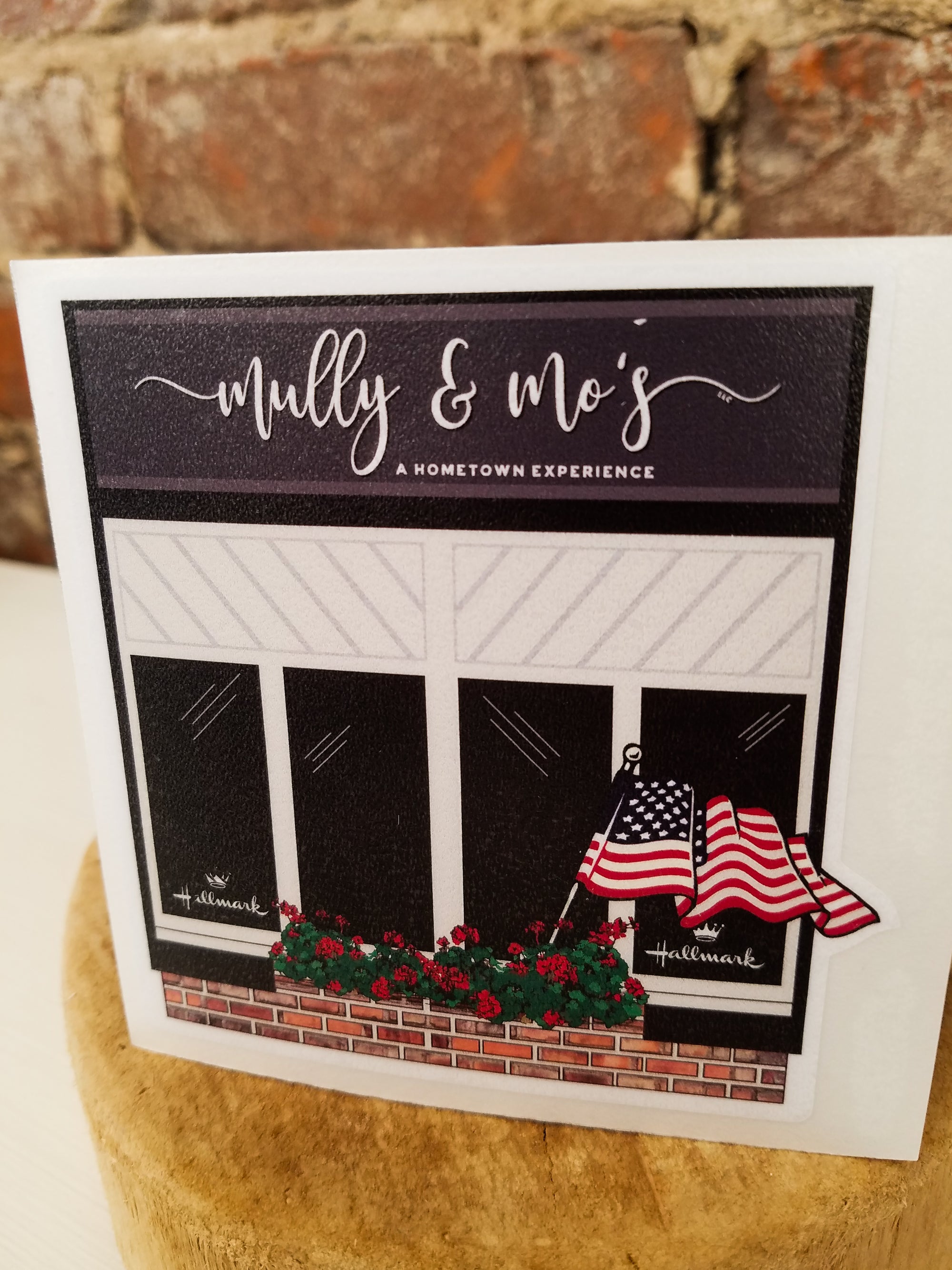 Are you a tried-and-true Mully & Mo's fan? Bring a piece of small-town charm wherever you go with our own storefront sticker, which features the quaint facade of our shop!