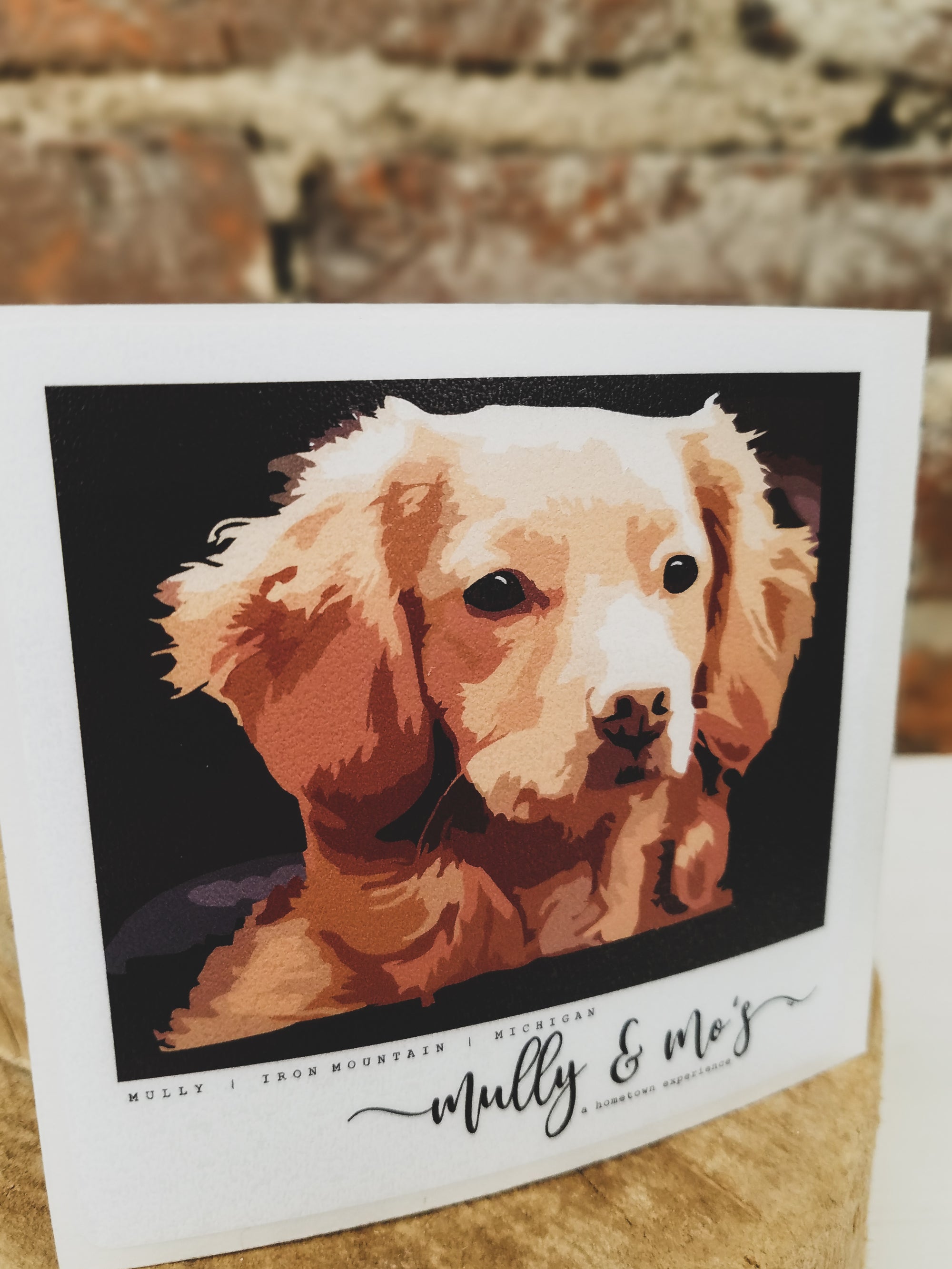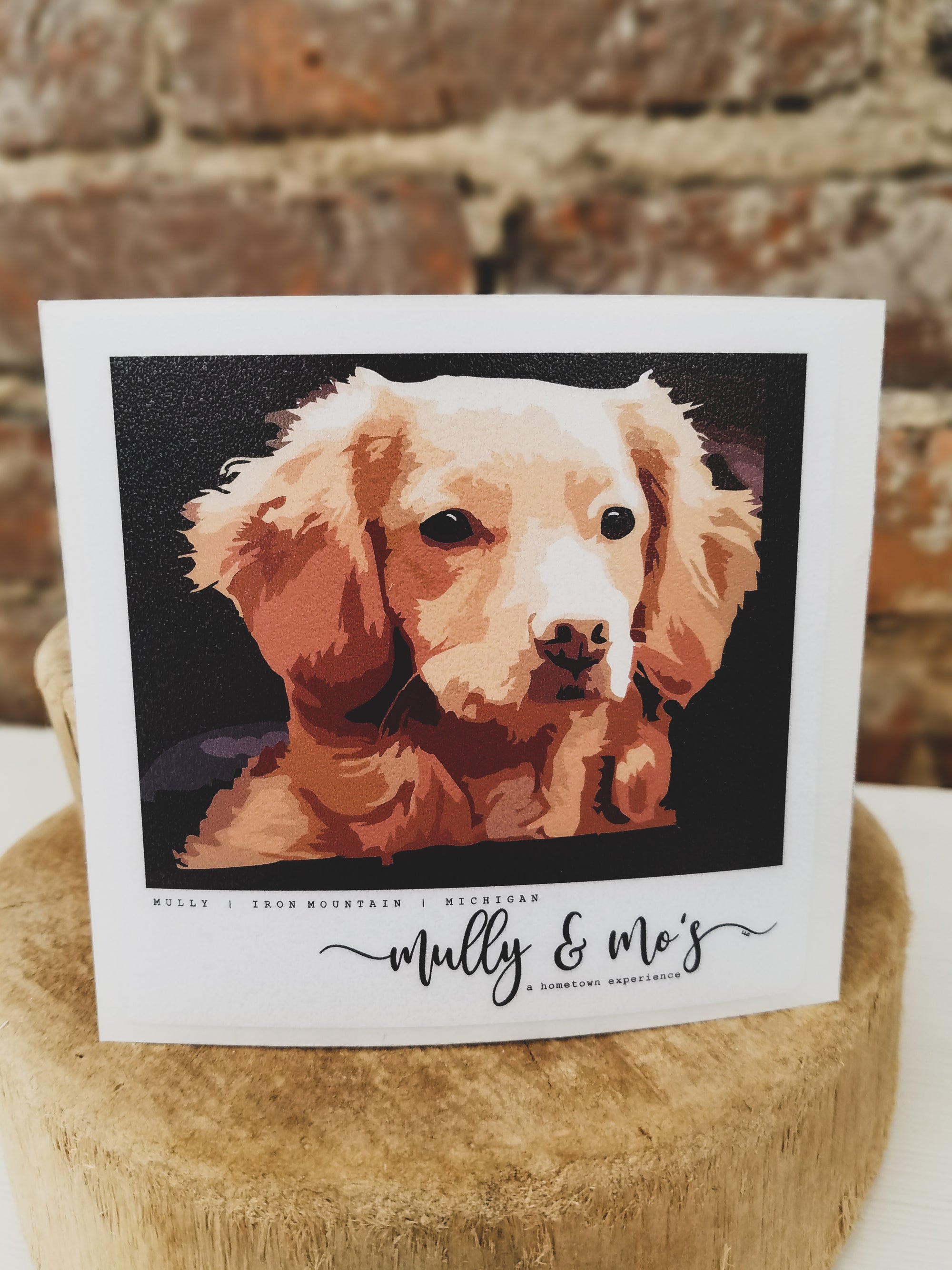 Sometimes he's quite the model. We just loved this shot of him so much we had to put it on a sticker. I mean look at those ears! If you've been in store, we know you've given him a pet or two. So many of you ask how much he costs -- well, now you can at least buy the sticker of him! -- it's a steal since no one could ever afford him, considering he's priceless.