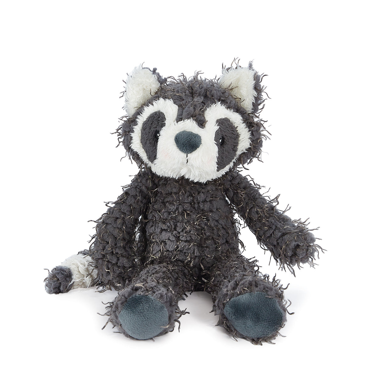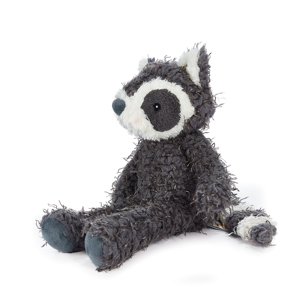 Roxy is bright eyed and truly bushy tailed in soft grey and cream scraggle fur. This Roxy Raccoon woodland animal has a sweet embroidered face with eye patches and a dainty velour nose. Roxy is the ring leader of the Camp Cricket crew, and will be a favorite of little girls and boys alike. This racoon stuffed animal is perfect