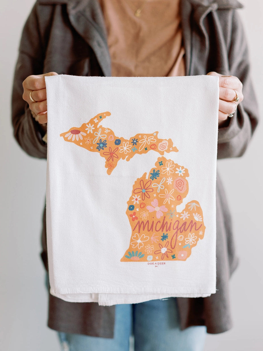 What could be better than Michigan in bloom? Brighten up your kitchen and show your state pride with this Michigan floral towel featuring a gorgeous rust color and vibrant flower pattern - no matter the season, you'll be dreaming of sunny days and pretty blooms as you cook up a storm!