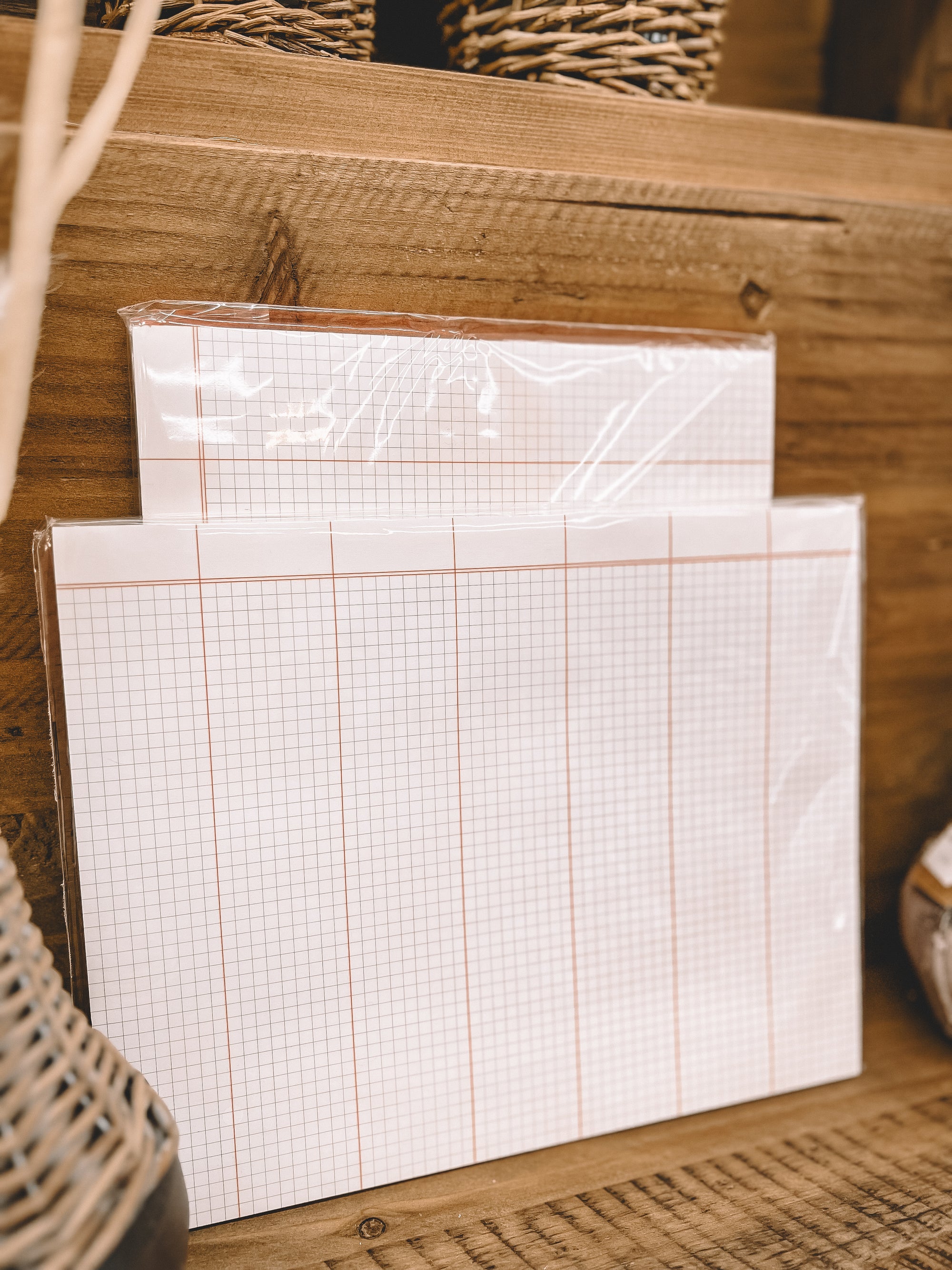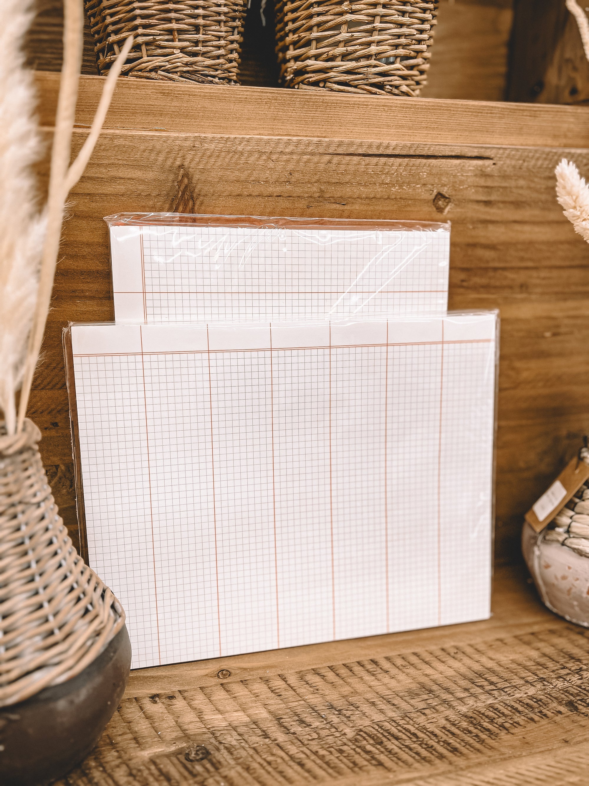 • 8" x 10" Large Notepad • 60 Tear-Off Sheets • Red Foiled Edges • Weekly Grid Layout • Printed with Soy Based Inks on 100 GSM Uncoated Lignin-Free and Acid-Free Text Stock Paper