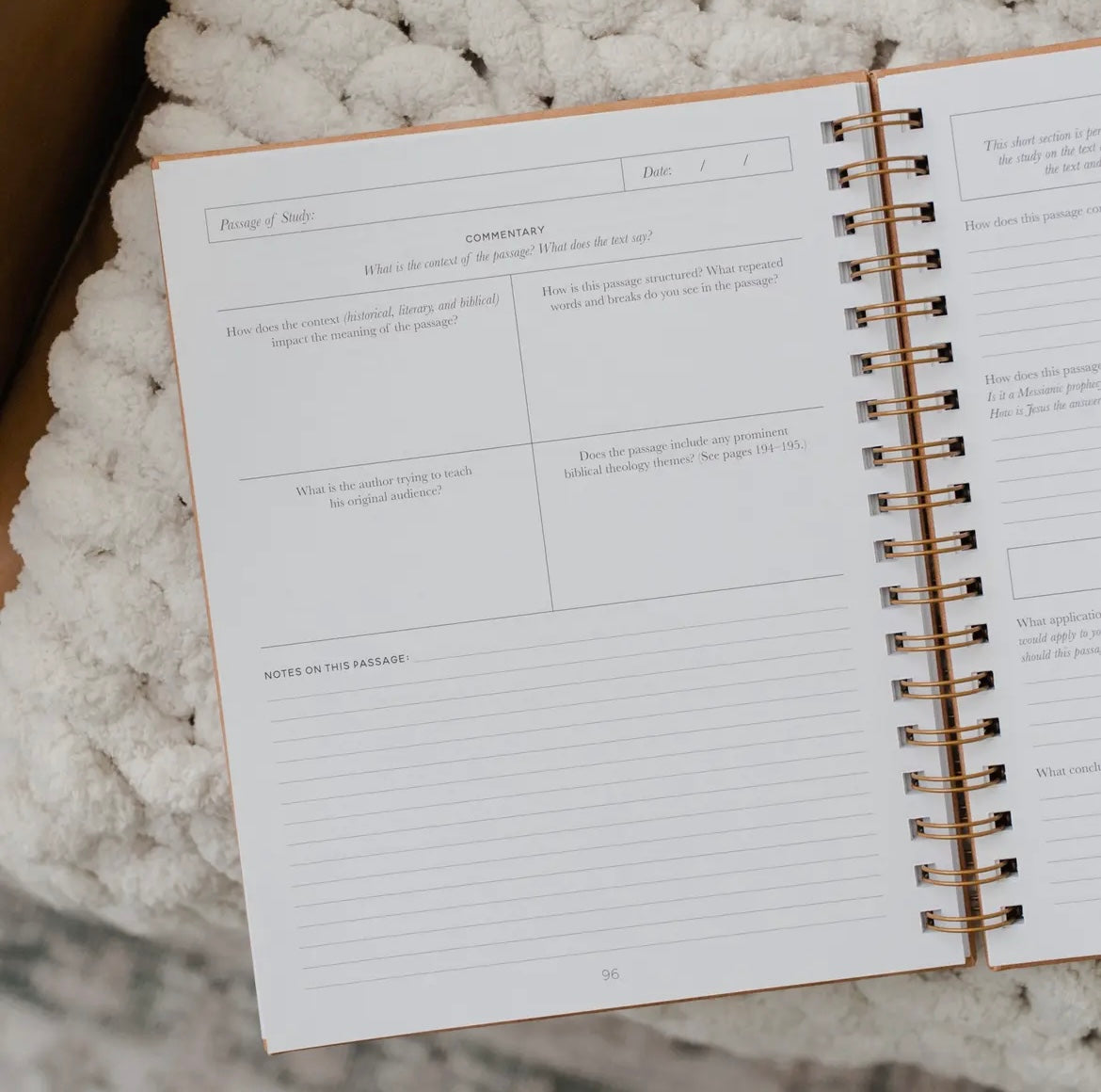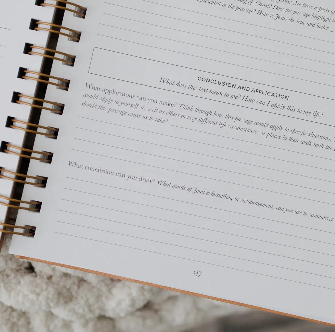 The journal guides you through a verse-by-verse study of a book of the Bible with daily workbook pages. The journal provides prompts to help you understand, interpret, and apply the text, as well as see the connections to Jesus and the gospel.