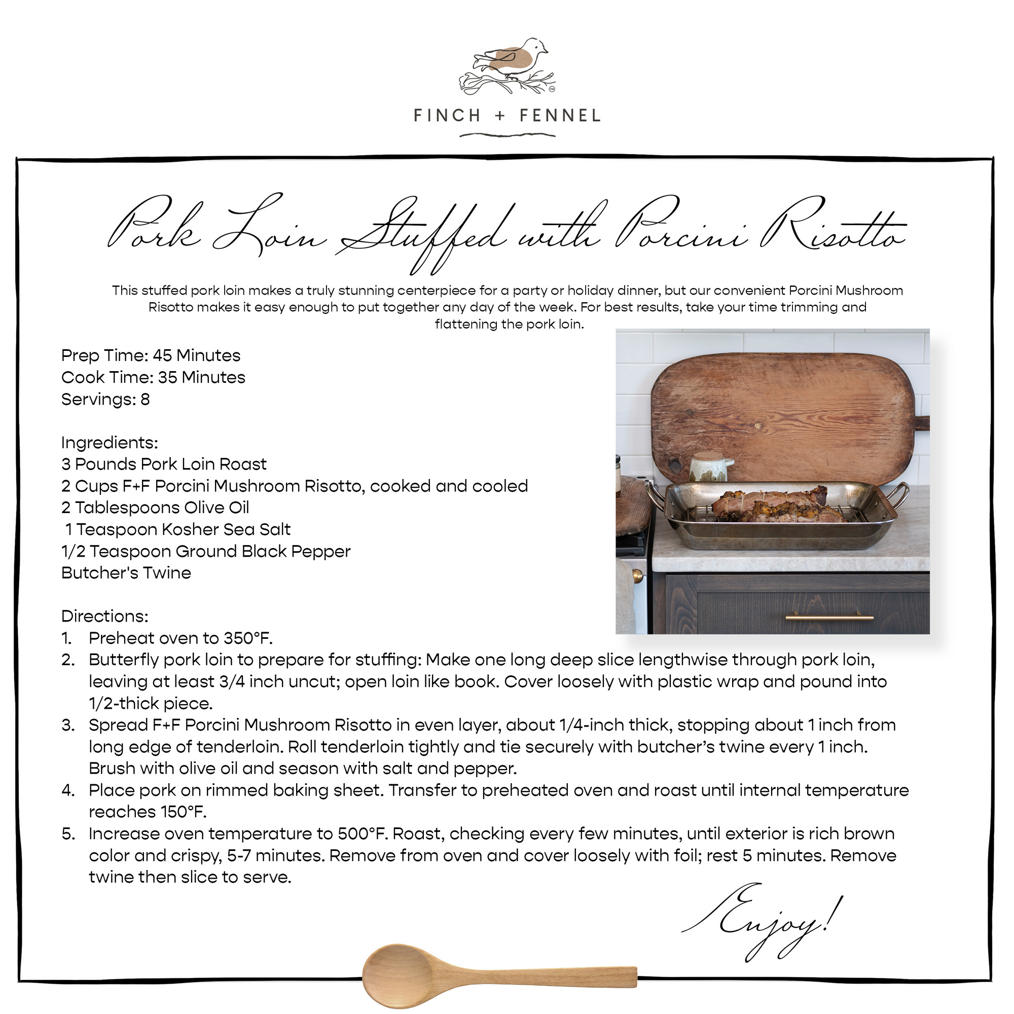 Our Porcini Mushroom Risotto is an elegant blend of absorbent Arborio rice and premium porcini mushrooms with herbs, spices and aromatics. This blend is a quick way to create a classic, rustic risotto flavored with real porcini mushrooms. Item is certified Kosher.