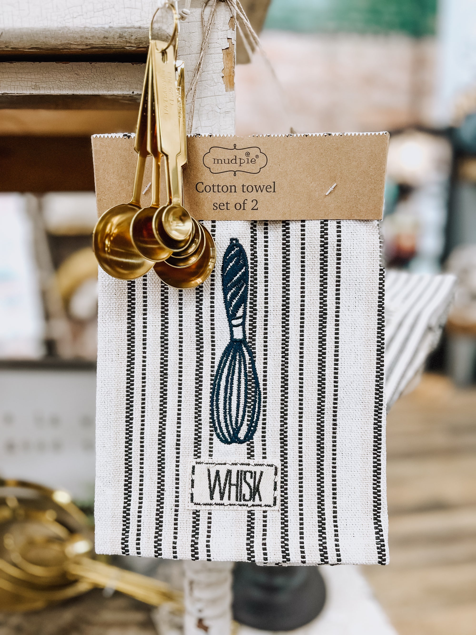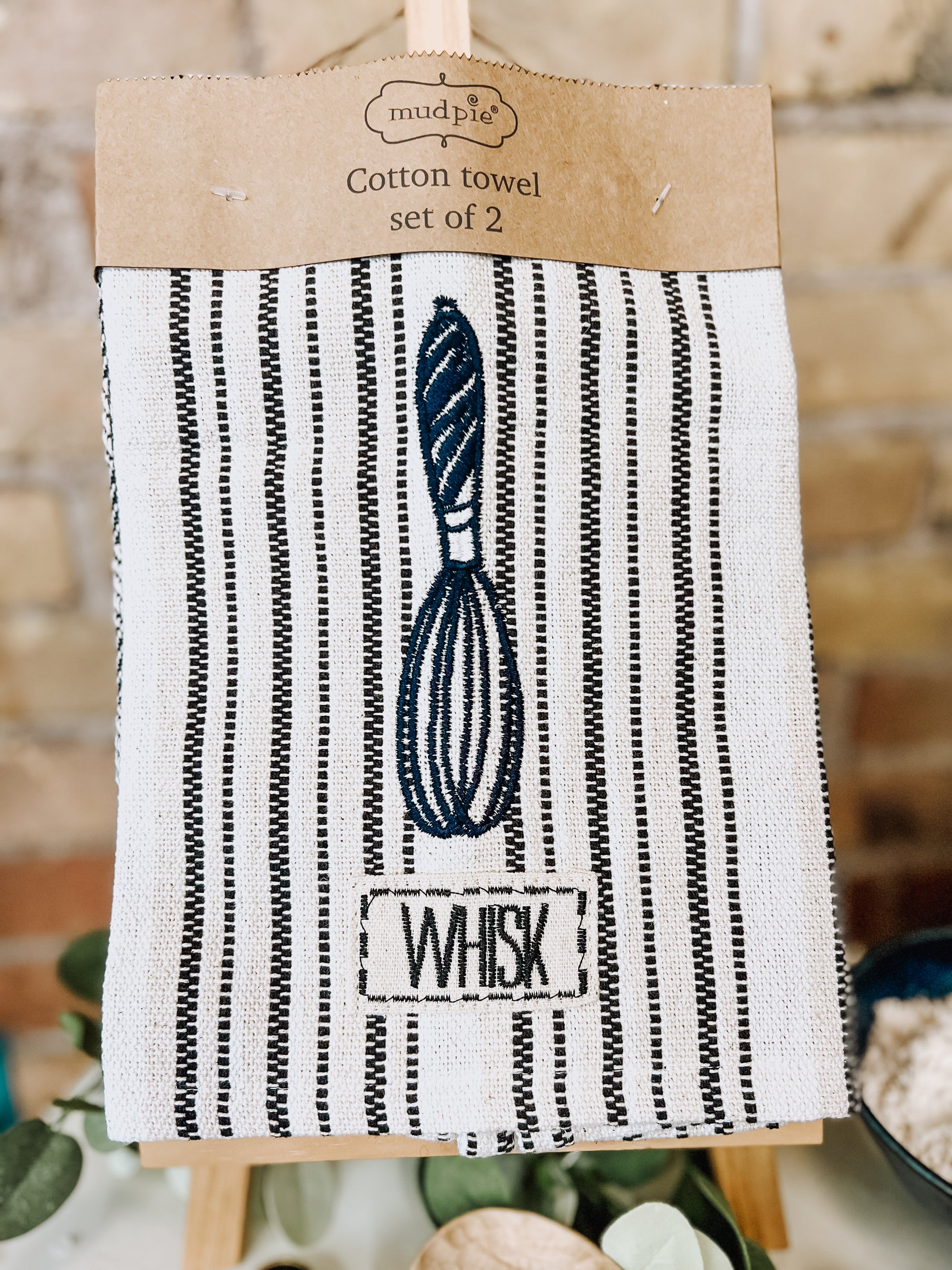 The Whisk Bistro Towel Set is a practical and stylish choice for your kitchen. Crafted from 100% cotton, these two hand towels are both soft and absorbent, making them ideal for drying dishes or cleaning up spills. Each towel showcases an embroidered utensil design and a canvas patch, adding a charming touch to your kitchen decor. The set also includes a patterned towel, providing variety and enhancing your collection with style.