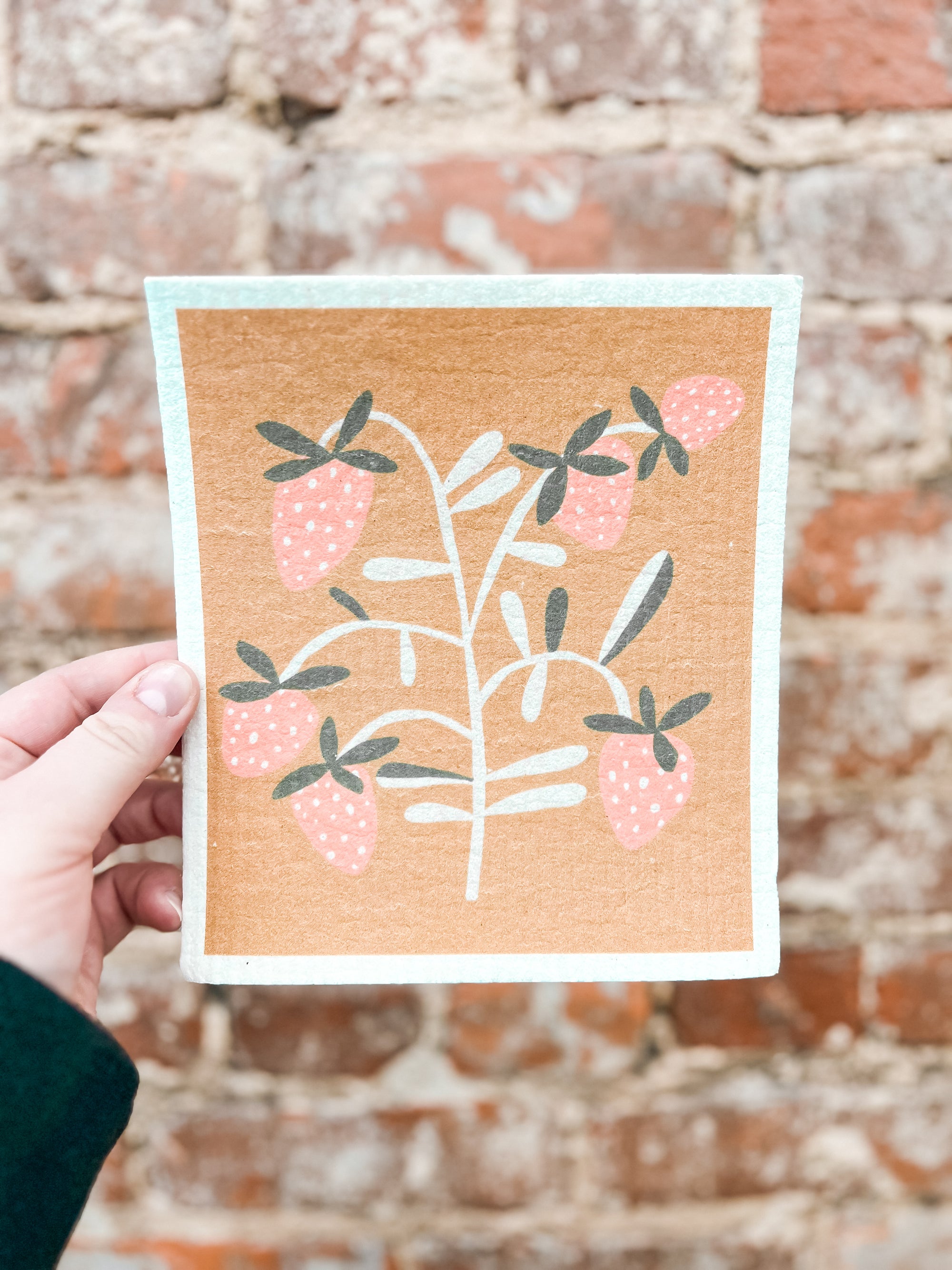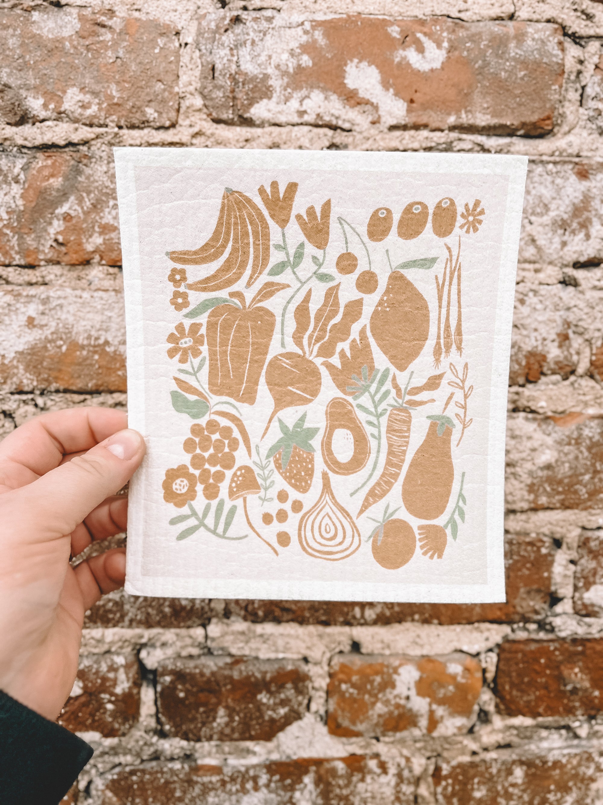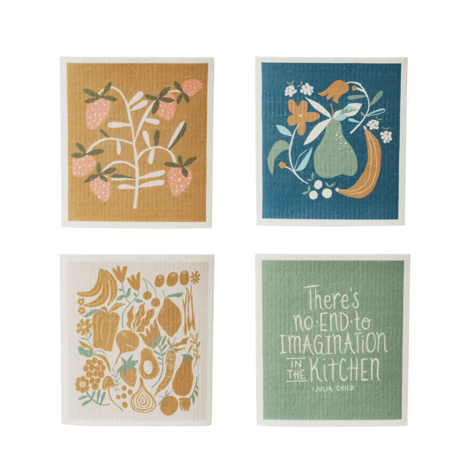 7-1/2"L x 6-3/4"W Reusable Cellulose Sponge Cloth w/ Fruit/Saying