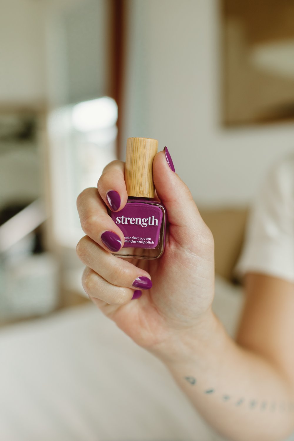 every polish comes with a "reminder card" that ties in with the polish name, and has a QR code that takes you to a devotional and curated worship playlist to match your reminder - take a little time away for just yourself and Jesus, read the short devotional and then paint your nails while you listen to the worship playlist, letting your nails be a reminder throughout your week!