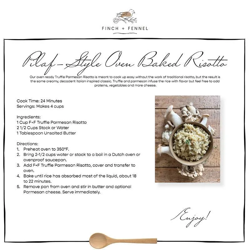 Our Truffle Parmesan Risotto is an elegant blend of tender Arborio rice, robust black truffles, savory Parmesan cheese and a medley of aromatic herbs, spices and mushrooms, perfect for creating rich, creamy risotto with layers of bold flavor. Item is certified Kosher.