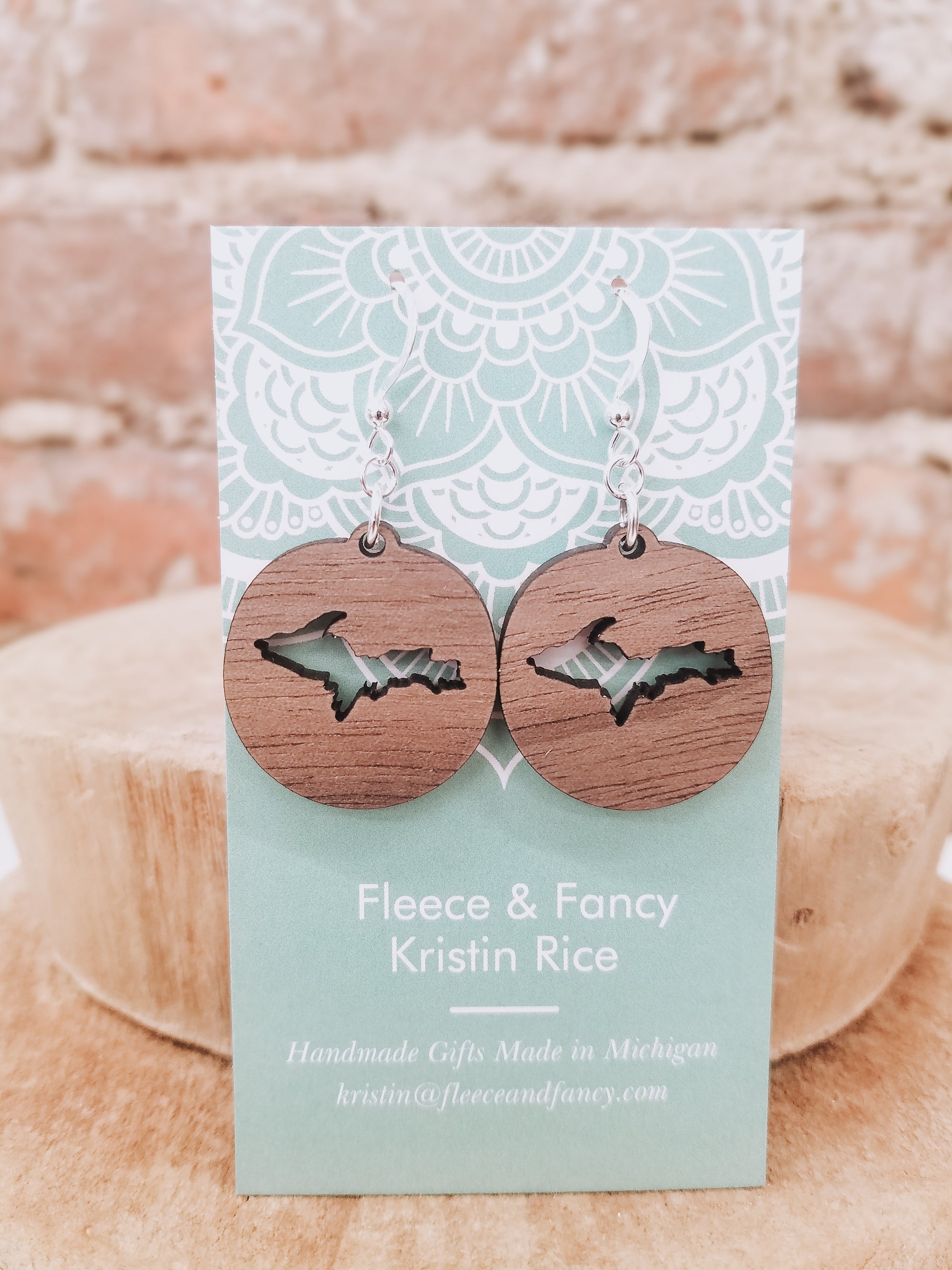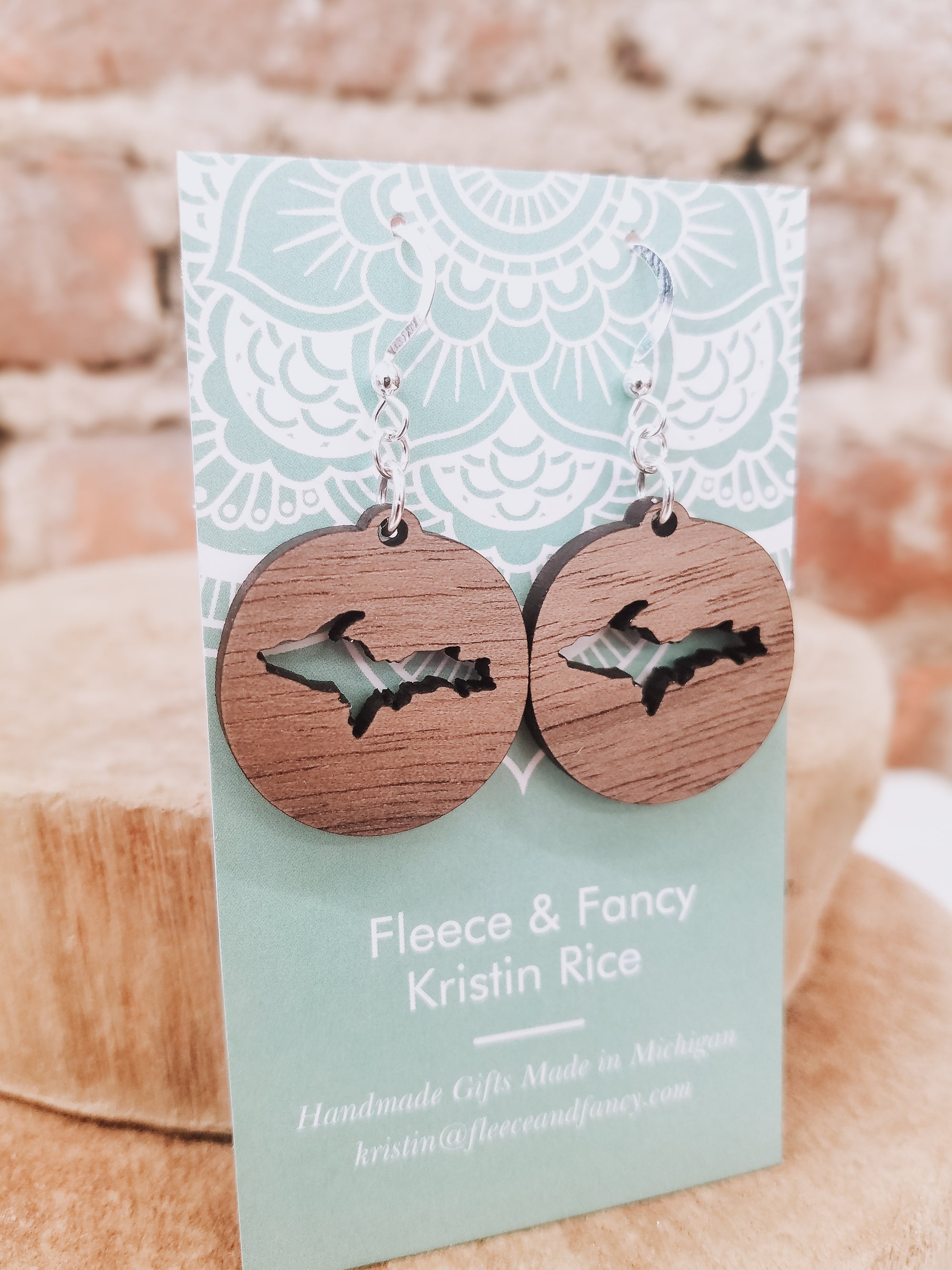 A sweeter demonstration of love for where you came from never looked so cute. These earrings are perfect for long or short hair, and will demonstrate your UPPER MICHIGAN state pride with flare. They're a great size for kiddos and teens who are just starting out with dangly earrings as well!